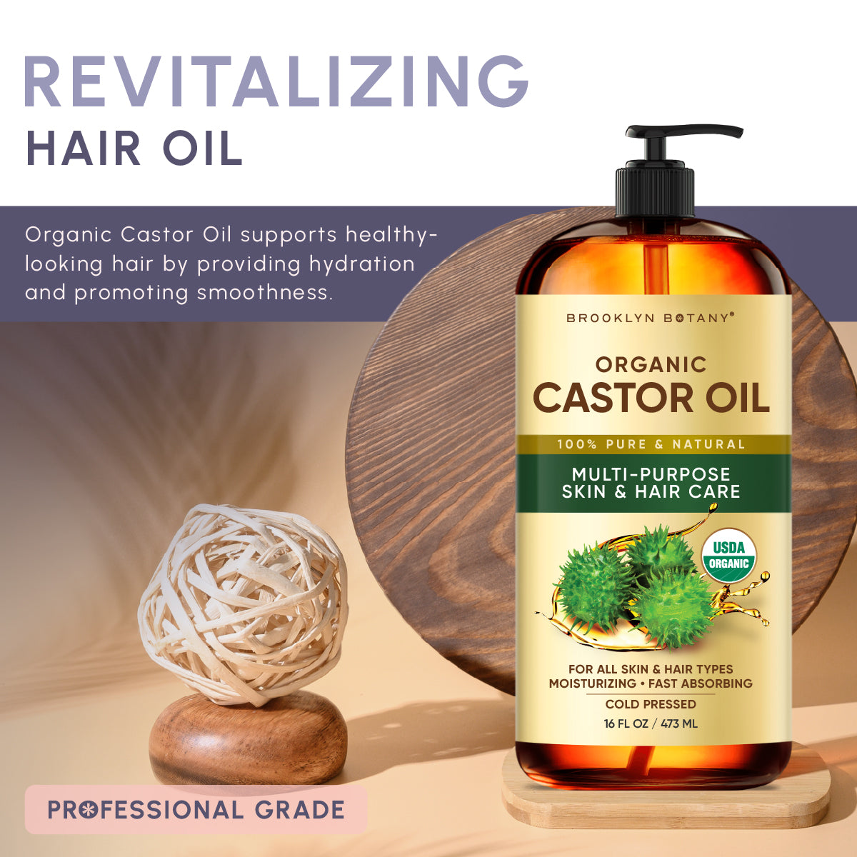 Organic Castor Oil is a rich carrier oil commonly used in hair care routines and for blending into nourishing body oils.